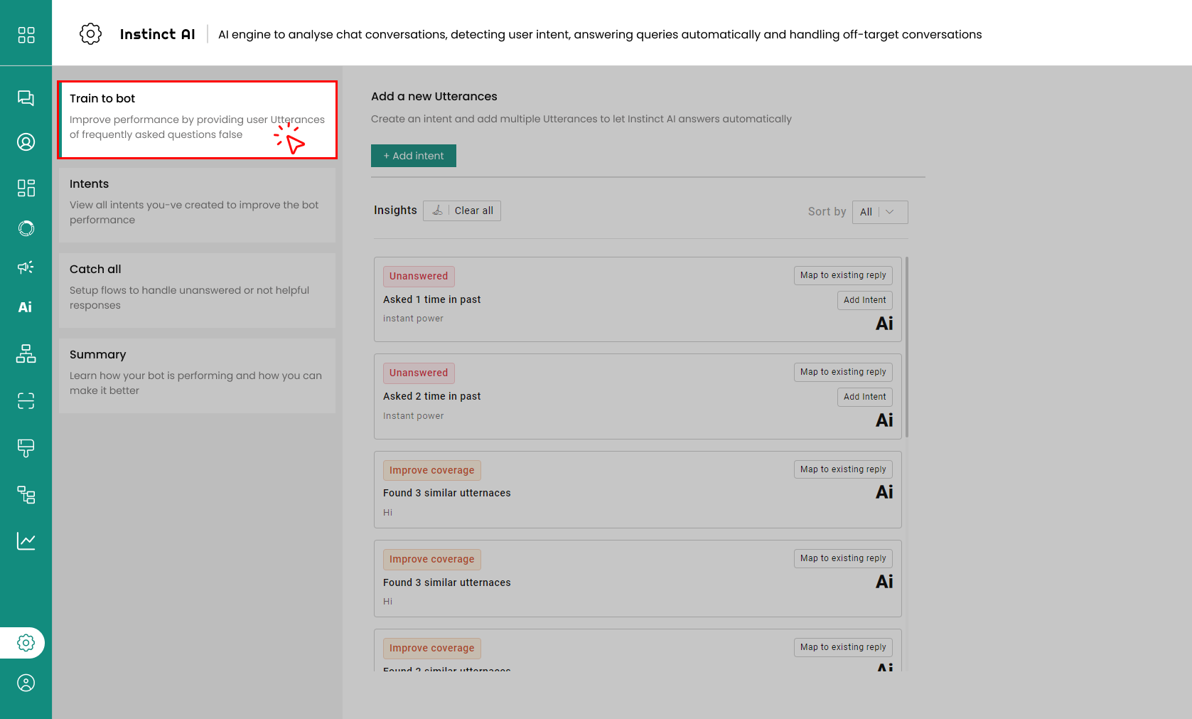 This is where you train your bot to deliver accurate and relevant responses for all the customer's queries.