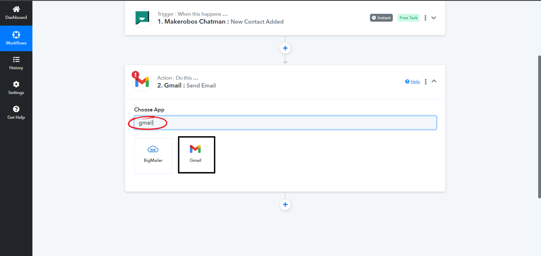 1. You'll now be redirected to the action, select an app where you want to send those data. For eg: Lets' select 'Gmail.'