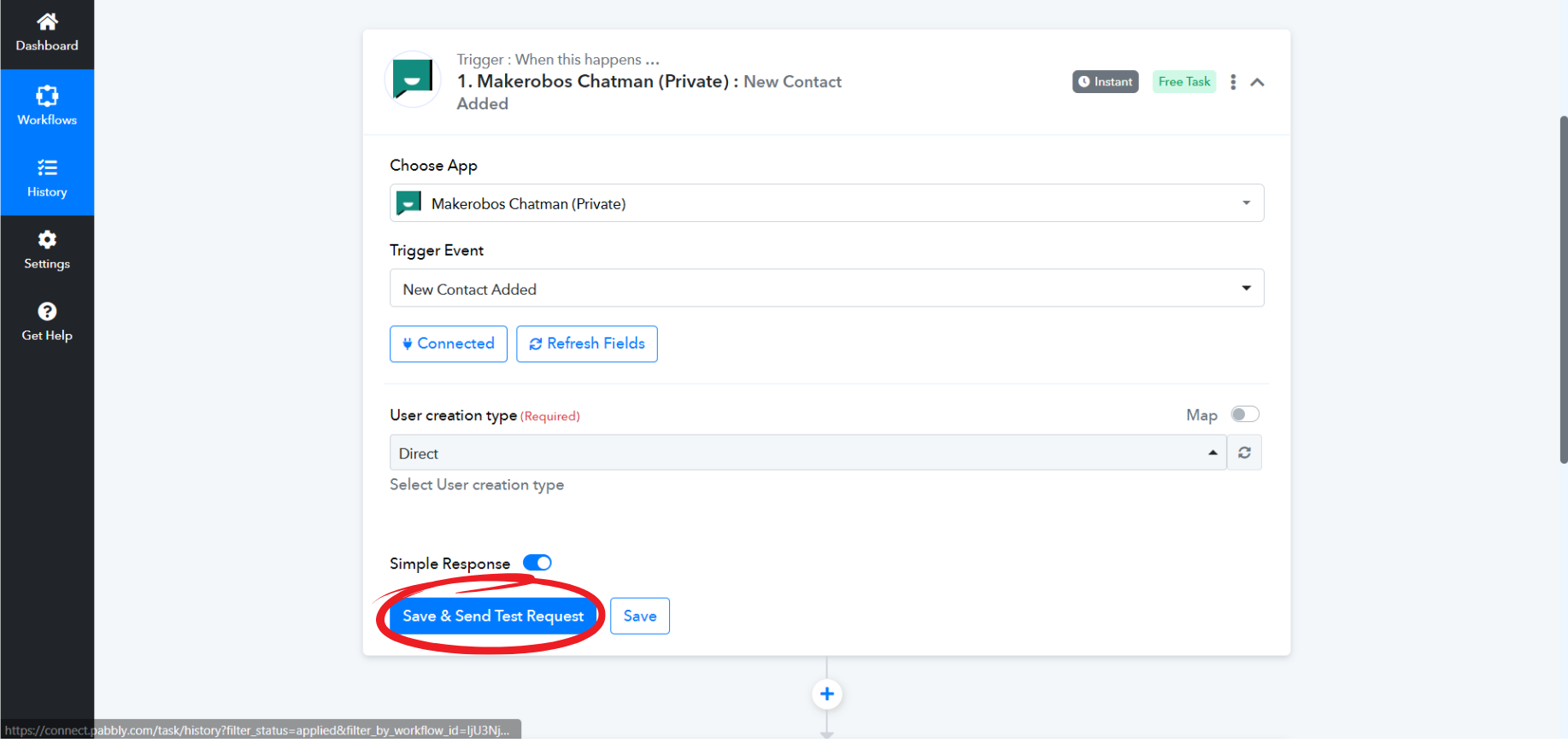 After tapping, we added a contact starting with 9170168XXXXX manually in Chatman and received the response for the same in Pabbly.