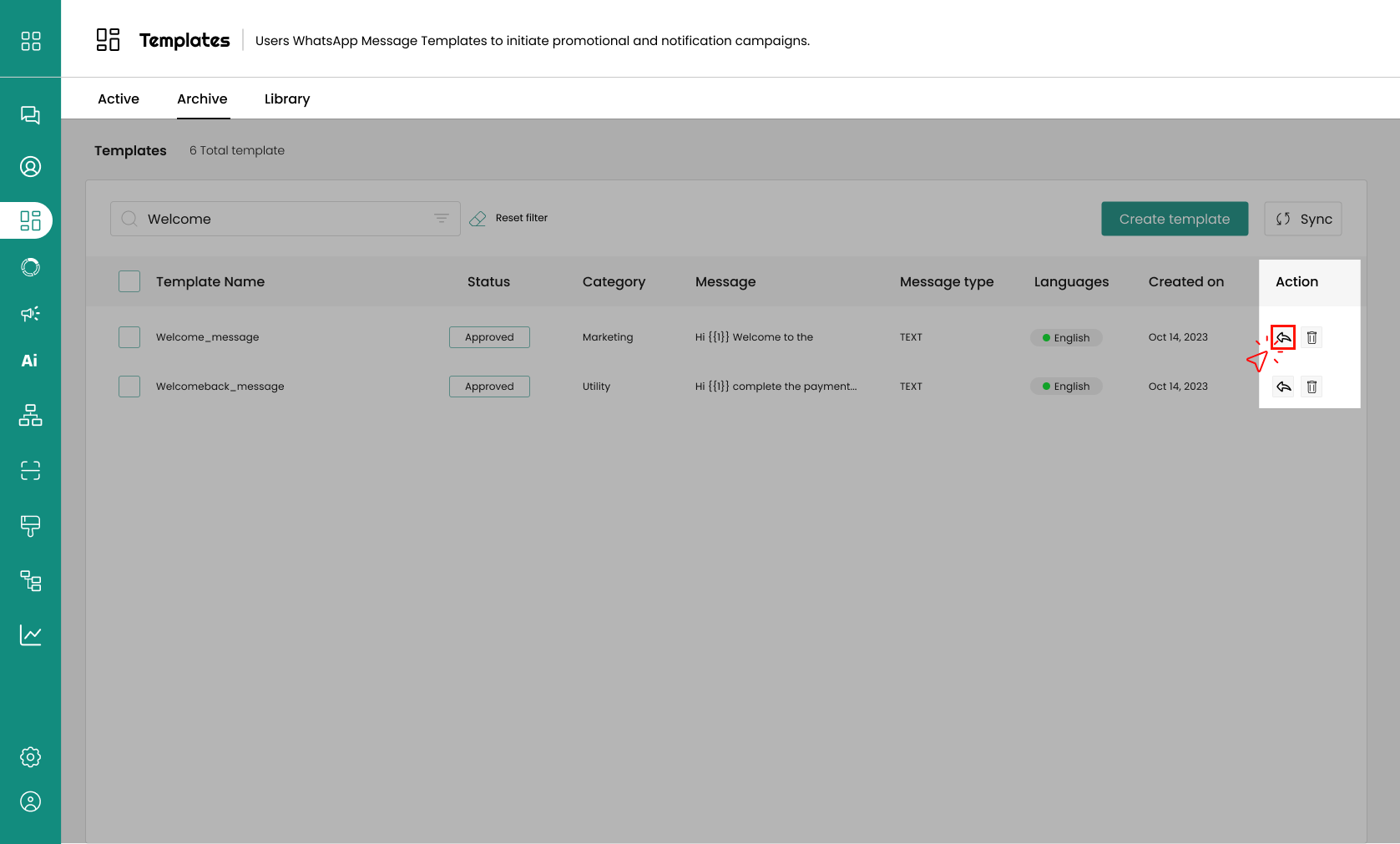 The main purpose of the section is to **store all the pending and rejected templates**, **filtering the active tab for better visibility**. You can also move the unnecessary or rarely used templates to the archive tab.