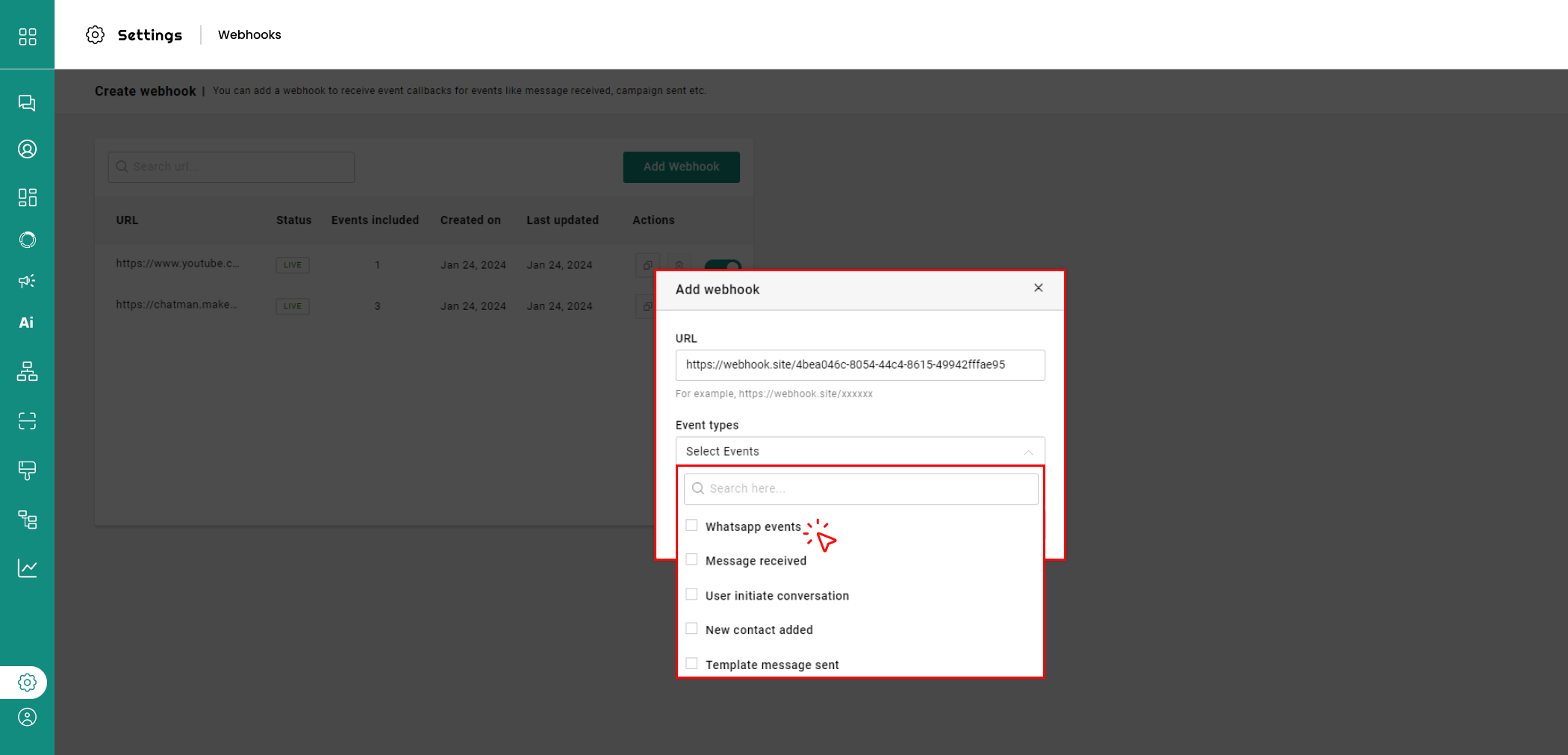 1. Enter Webhook URL.